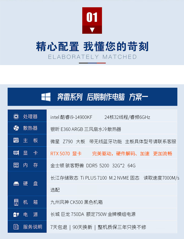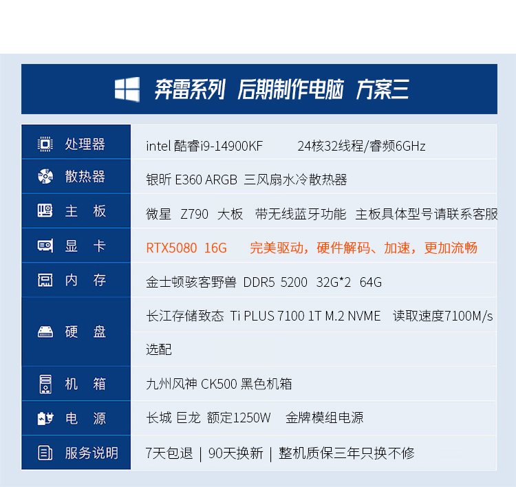 14900KF、RTX5080剪辑调色三维渲染设计师专用工作站电脑